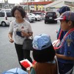 恒例になりました赤い羽根募金ですが、与那原町の街頭募金でこれだけの額を集める団体はボーイスカウトが一番です。ととても褒めてくださいました。